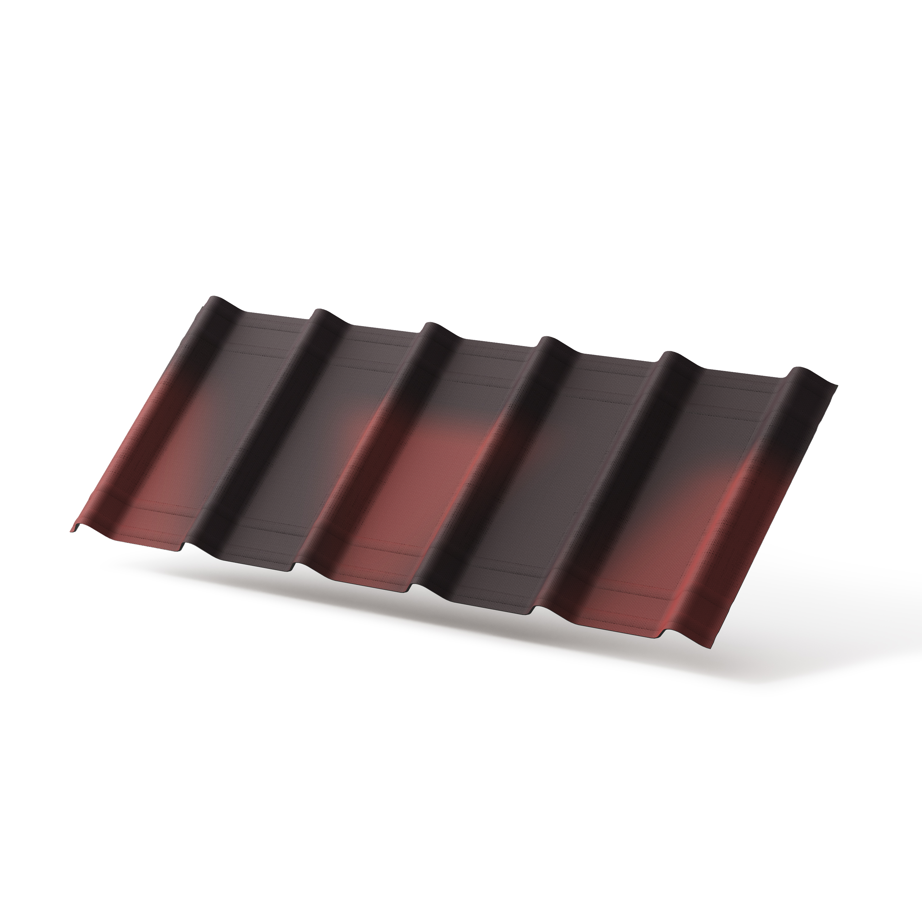 Ондувилла защищена от выгорания одним грунтовочным слоем окраски и еще тремя декоративными. Цвет кровли окончательно устанавливается спустя полгода после укладки и затем сохраняет яркость весь срок эксплуатации.