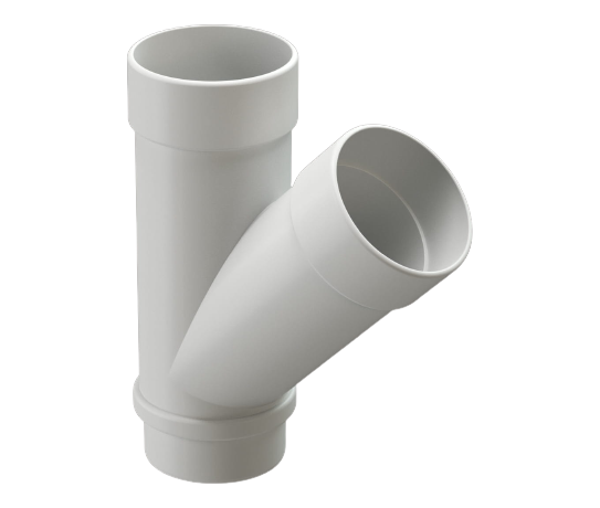 Тройник помогает две трубы свести в одну. Есть вывод для второй трубы, которая будет подведена под 45 градусов.