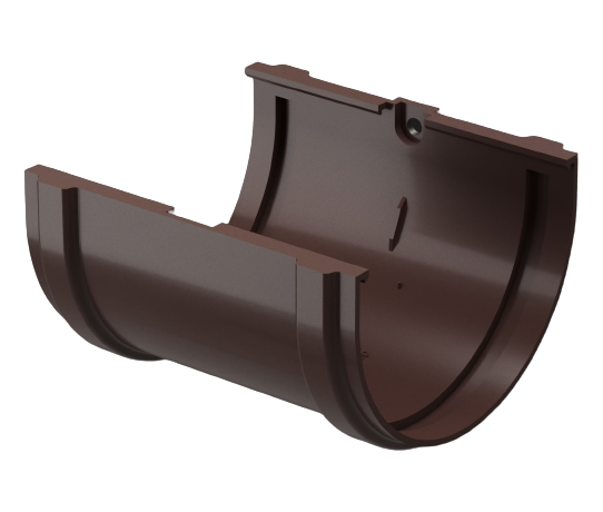 Элемент, который соединяет желоба между собой и создаёт герметичный, надежный стык. Крепится соединитель желобов на торцы элементов. Является доборным элементом.