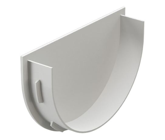 Затвор воронки применяют в случае, если желоб крепится к воронке лишь с одной стороны. До этого этот элемент не использовался, приходилось использовать маленький кусочек желоба и только потом устанавливать на него заглушку желоба.